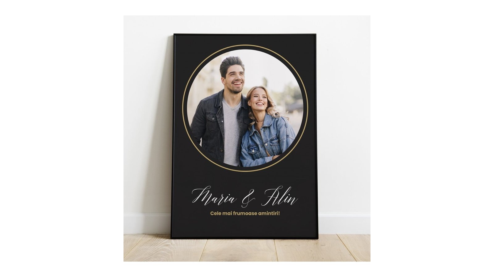 Cele mai frumoase amintiri rămân cele înrămate, nu-i așa? Vreți să surprindeți o persoană specială cu un cadou deosebit, personal și pe care să îl poată păstra ani de zile? Deși trăim în era tehnologiei, tablourile personalizate au rămas unele dintre cele mai apreciate cadouri de către cei dragi. Indiferent de ocazie – zi de naștere, Crăciun, aniversarea relației și altele, un tablou personalizat cu o fotografie rotunda si mesaj va trece testul timpului si va fi la fel de apreciat. Avand o categorie special dedicata tablourilor personalizate , inevitabil vei gasi ceva pe placul tau. Specificații: Alegeți o fotografie calitativă, în format JPEG sau PNG și încărcați-o pe site. Calitatea tabloului este influențată de calitatea fotografiei încărcate. Rama este confecționată din plastic cu sticla, iar fotografia este printata inkjet. Pentru a putea comanda tablou personalizat cu o fotografie rotunda si mesaj trebuie să urmați câțiva pași simpli: Pasul 1: Alege dimensiunea tabloului. Pasul 2: Personalizeaza tabloul. Pasul 3: Adauga in cos si plaseaza comanda. Pasul 4: Bucură-te alături de cei dragi de tabloul comandat.