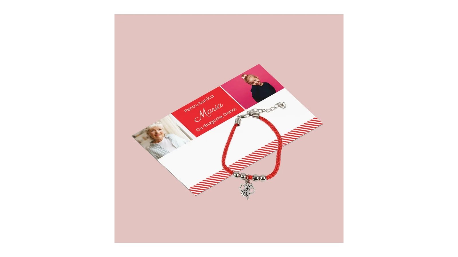 Martisor personalizat cu mesaj si doua fotografii + bratara