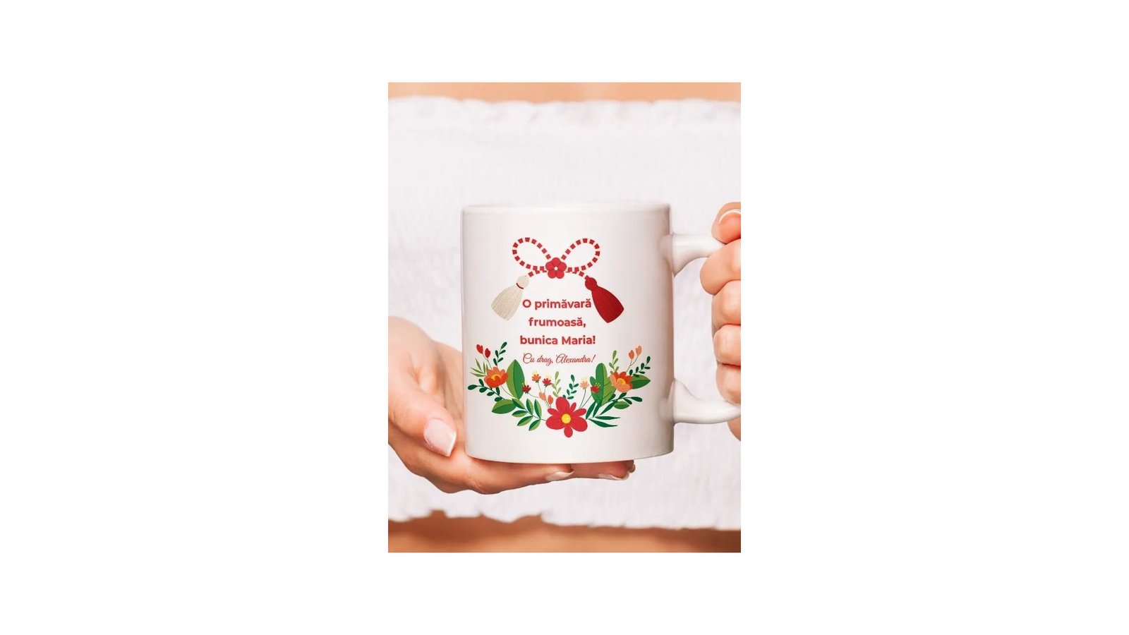 Sunteți în pană de idei și doriți să faceți un cadou special pentru o persoană dragă, de mărțișor? post_title va fi întotdeauna o alegere bună! Fie că vorbim despre o fotografie imprimată sau un mesaj amuzant și personalizat, cănile sunt folosite în multe momente ale zilei, de către toate persoanele. Indiferent dacă vorbim despre servitul cafelei dimineața sau a unui ceai la ora 5, persoana specială din viața dumneavoastră întotdeauna va avea zâmbetul pe buze când va folosi o cană personalizată CREATIV. Vă punem la dispoziție peste 100 de modele de căni personalizate , cu imagini proprii, texte amuzante, declarații de dragoste sau urări speciale pentru persoane cu activități importante – doctori, avocați, profesori etc. Cănile sunt confecționate din materiale rezistente, iar imprimarea se face prin sublimare. post_title este o modalitate excelentă pentru a vă putea asigura că amintirile dumneavoastră vor rezista pentru totdeauna. Este o idee de cadou personală și din suflet pentru o persoană dragă, dar este o achiziție minunată chiar și pentru locuința dumneavoastră. Specificatii: Cani clasice de 350ml (11oz) tratate special pentru a se putea imprimata prin sublimare. Canile vin ambalate in cutii individuale de carton. Compatibila cu cuptorul cu microunde si cu masinile de spalat vase post_title se poate comanda foarte rapid in doar 4 pasi: Pasul 1: Apasa butonul de personalizare pentru ati completa datele sau pentru a crea modelul tau Pasul 2: Adauga in cos Pasul 3: Plaseaza comanda Pasul 4: Bucură-te de o cana personalizata exact pe gustul tau.