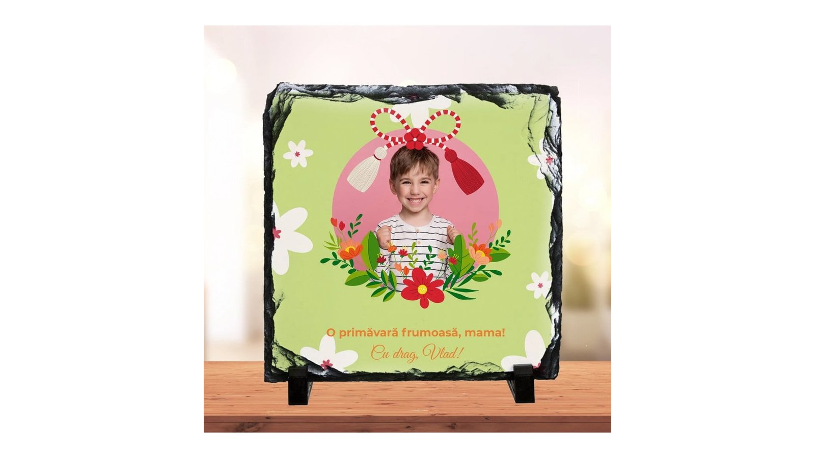 Piatra personalizata cu o fotografie si text pentru Martisor