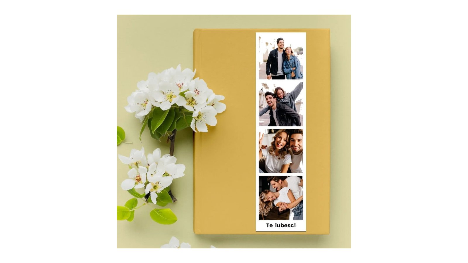 Sunteti pasionat de citit? Aveti o cunostinta ce este mare amatoare de literatura? Un semn de carte personalizat cu 4 fotografii si text este alegerea potrivită pentru o astfel de persoana. Personalizate cu fotografii, mesaje sau citate, semnele noastre de carte sunt confecționate dintr-un material de calitate. Verifica gama noastra completa de semne personalizate pentru a alege ceva potrivit. Specificatii: Material: carton 300gr semiglossy Dimensiune: 20 x 5 cm Pentru a putea comanda un semn de carte personalizat cu 4 fotografii si text trebuie să urmați câțiva pași: Pasul 1: Apasa butonul de personalizare pentru ati completa datele sau pentru a crea modelul tau Pasul 2: Adauga in cos Pasul 3: Plaseaza comanda Pasul 4: Bucură-te de un semn de carte personalizat exact pe gustul tau.